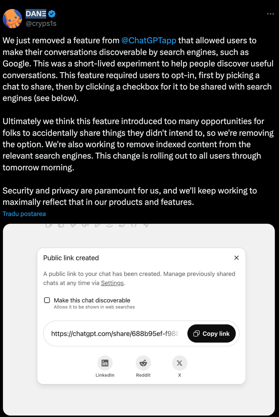 PS: needless to say, delete your shared ChatGPT conversations like yesterday, if you have any.