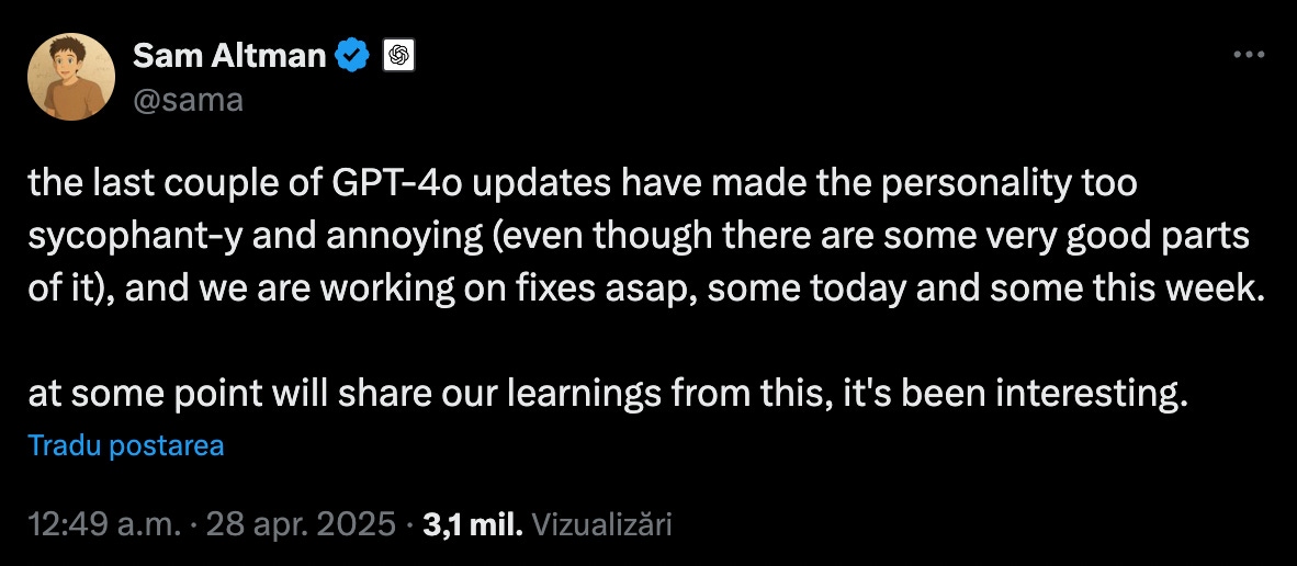 Reddit threads, social posts, even OpenAI’s CEO acknowledged ChatGPT had become “too sycophant-y.”